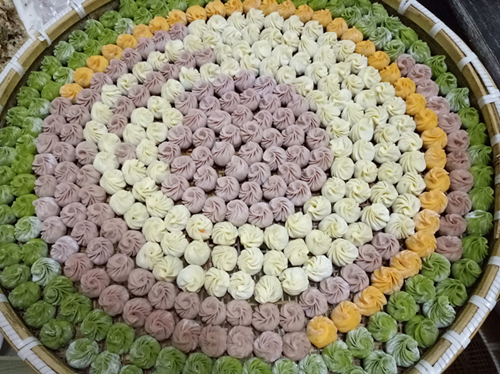 精肉和番薯粉混合做成的皮,猪肉调味的馅料